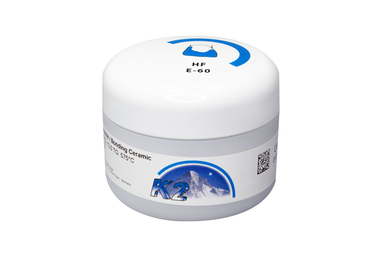 K2 HF es una cerámica metálica de alto punto de fusión con excelentes propiedades ópticas y físicas. Se cuece a 910 ° C y es adecuado para casi todas las aleaciones con un CET de 13,8 - 14,9 / 25 ° - 500 ° C. Si el CET es superior a 14,5, se recomienda un enfriamiento a largo plazo.